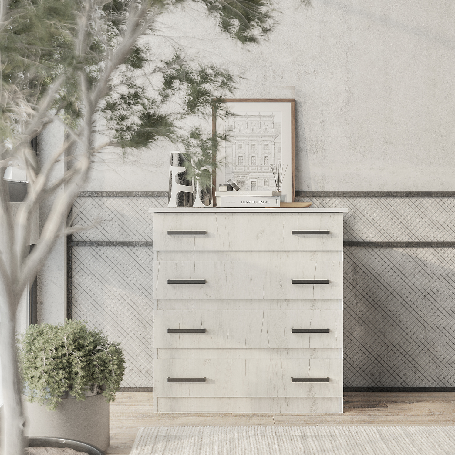 Функциональное решение для хранения вещей в спальне, гостиной или домашнем кабинете. Лаконичный дизайн и нейтральный оттенок «дуб крафт белый» позволяют легко вписать модель в любой интерьер, а строгая геометрия помогает визуально организовать пространство.