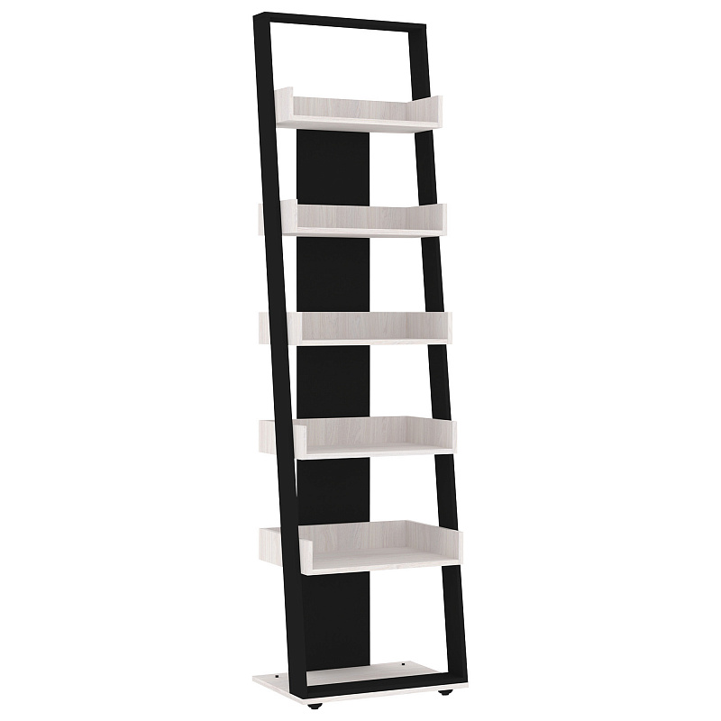 Этот современный стеллаж не просто решает вопрос хранения, но и становится стильным украшением комнаты. Его уникальная «лестничная» форма с полками разной глубины помогает организовать пространство с максимальной эффективностью: на широких полках разместятся крупные вещи, а на узких — книги или сувениры.