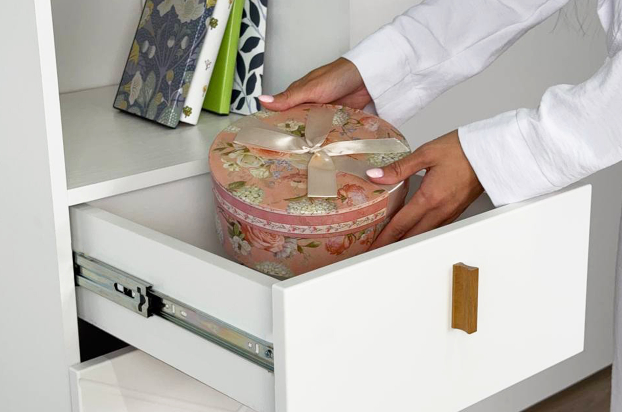 Узкий многофункциональный стеллаж для организации хранения в любом помещении. Модель сочетает закрытые и открытые секции, что позволяет гибко зонировать пространство и поддерживать порядок. Выполнен в лаконичном скандинавском стиле.