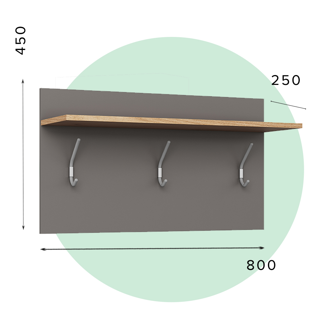 СИТИ Прихожая Вешалка В-3 (450*800*250), Серый Графит/корпус Дуб Крафт Золотой