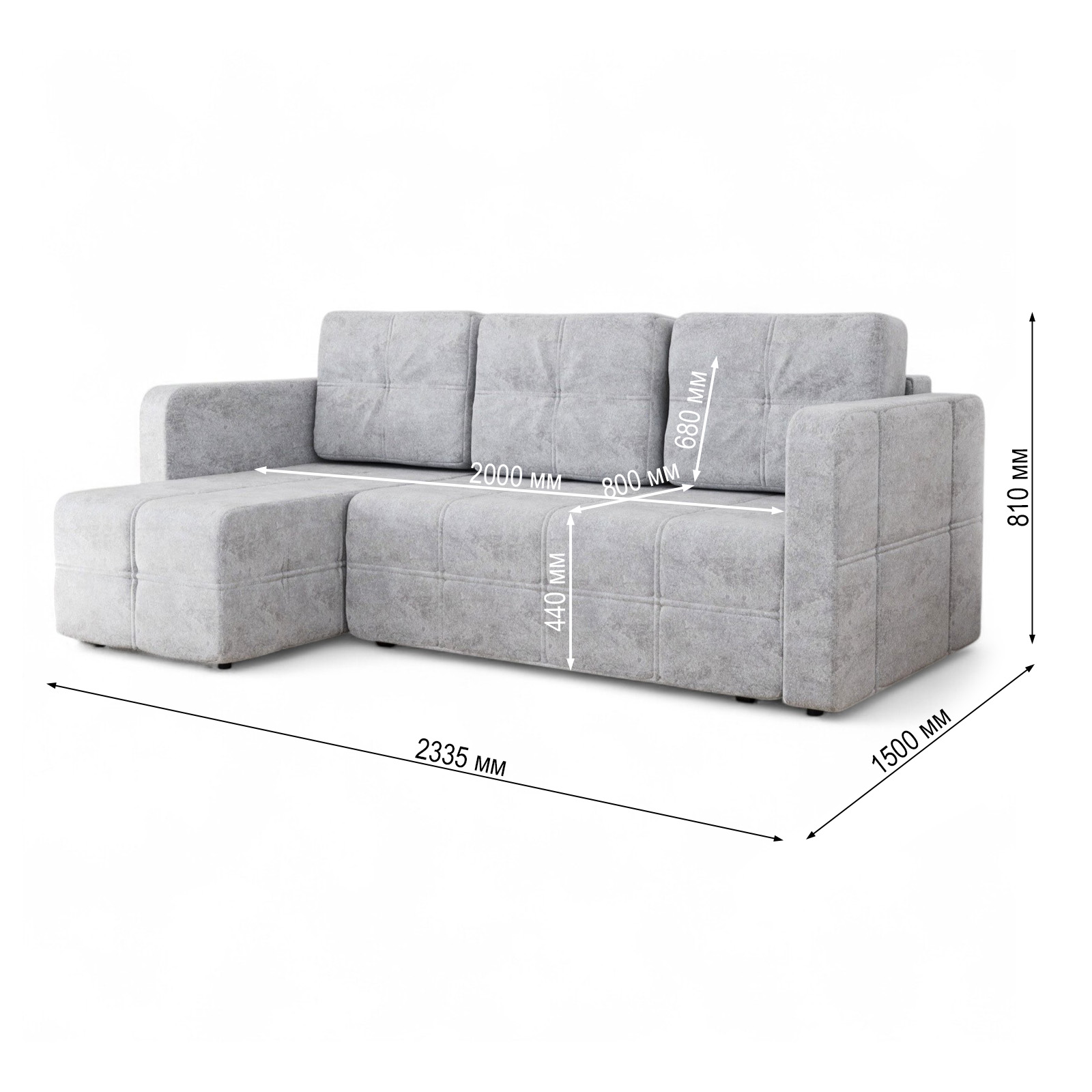 • Габариты (Ш х Г х В): 233.5 x 150 x 81 см.