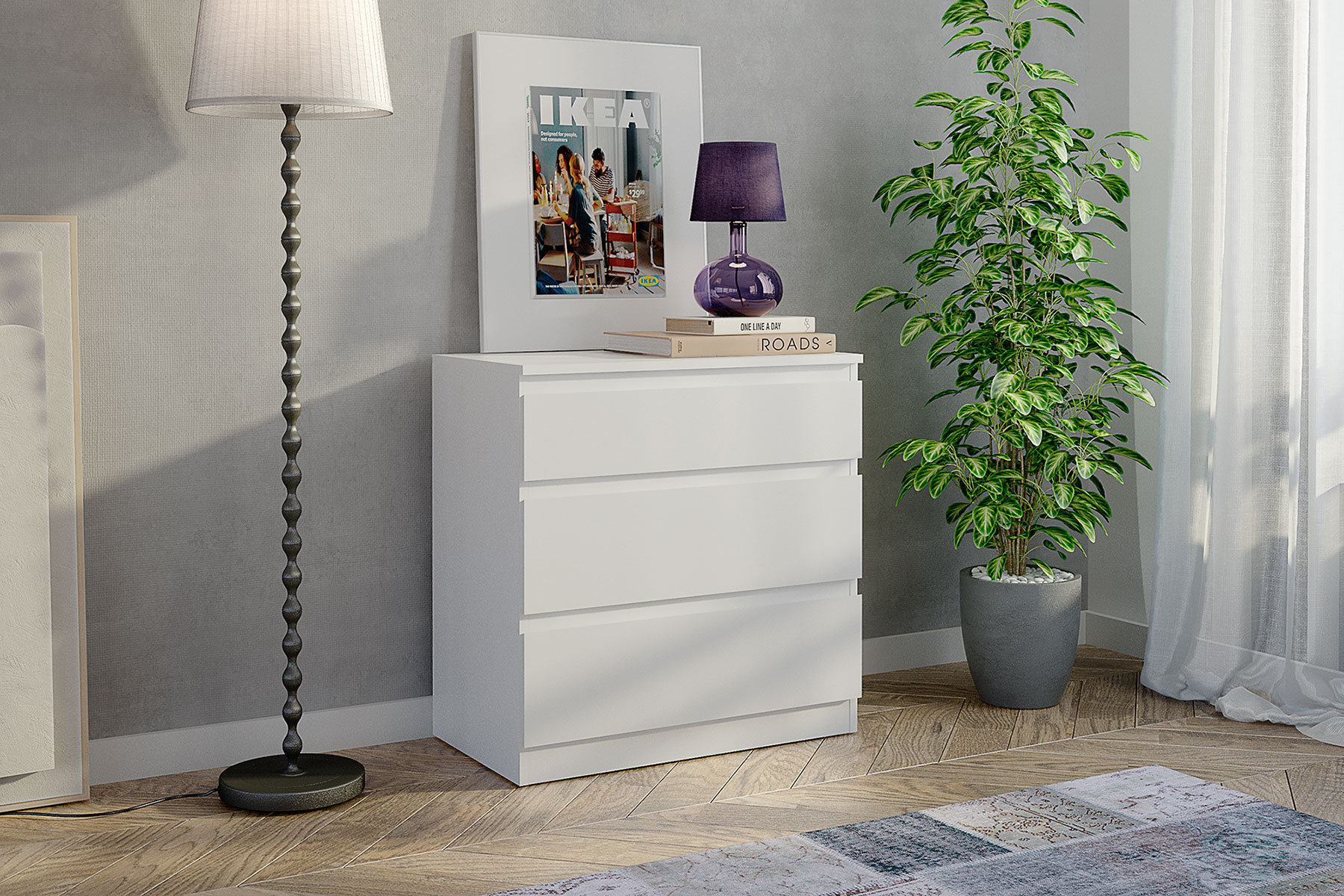 Комод Морвик 465.02 3 ящика Белый