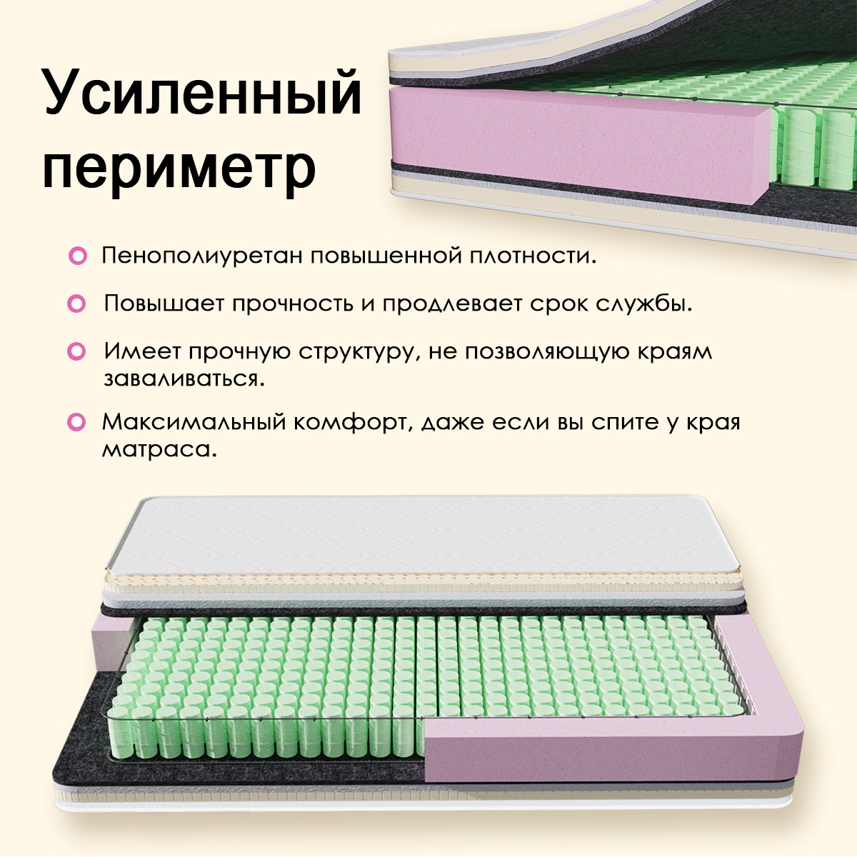 Блок независимых пружин,повышенной надежности.Латекс.Форплит.Войлок.Чехол стеганный на синтепоне.