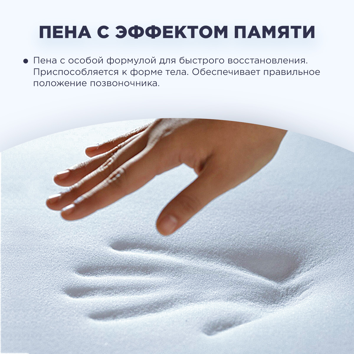 • Это ключевая особенность данной модели. Умный материал чувствителен к теплу и давлению: он мягко обволакивает контуры тела, снимая напряжение в плечах и бедрах, а затем быстро возвращается в исходную форму, исключая эффект «утопания». Это гарантирует правильное положение позвоночника в любой позе.
