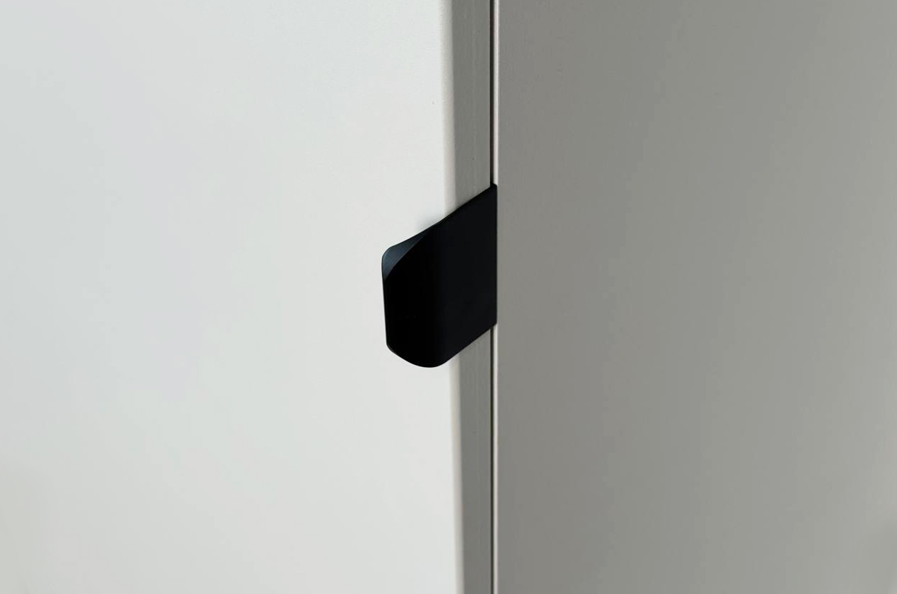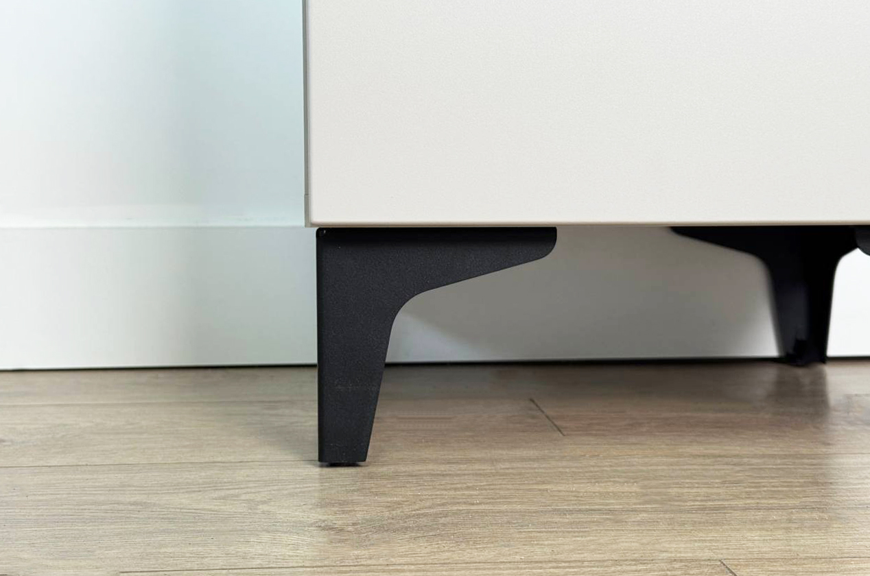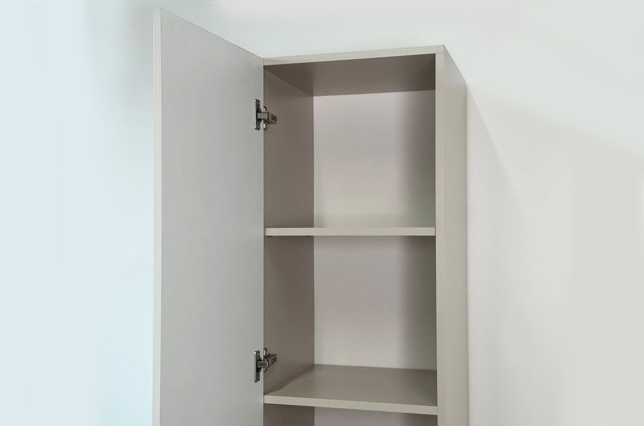 • • Стильный дизайн: Элегантный фасад из МДФ с декоративной фрезеровкой и надёжная металлическая ручка.