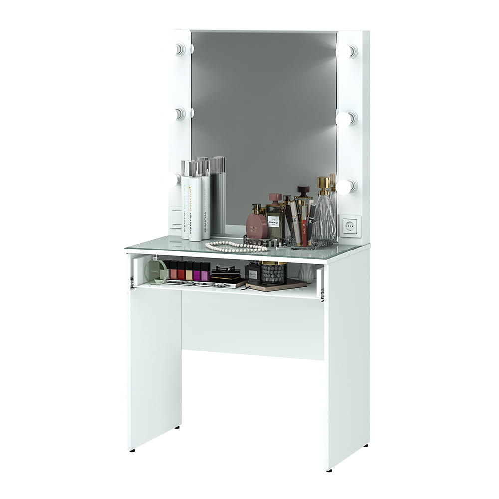 Косметический стол «Мемори» СТ-03 — это идеальное решение для создания уютного и стильного уголка в вашей спальне или гардеробной. Модель выполнена в белом цвете, который станет украшением любого светлого интерьера. Главная особенность стола — подсветка по периметру зеркала, которая создает идеальные условия для макияжа и ухода за собой. Стол оснащен съемной стеклянной столешницей, удобным выдвижным ящиком для косметики и встроенной розеткой для подключения электроприборов. Правильный выбор по лучшей цене — стол «Мемори» СТ-03.