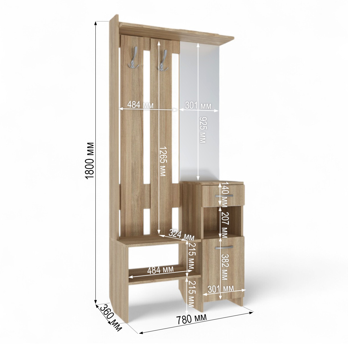 ✓ Выдвижной ящик: Практичный выдвижной ящик позволит удобно хранить мелкие предметы и аксессуары, поддерживая порядок в прихожей.