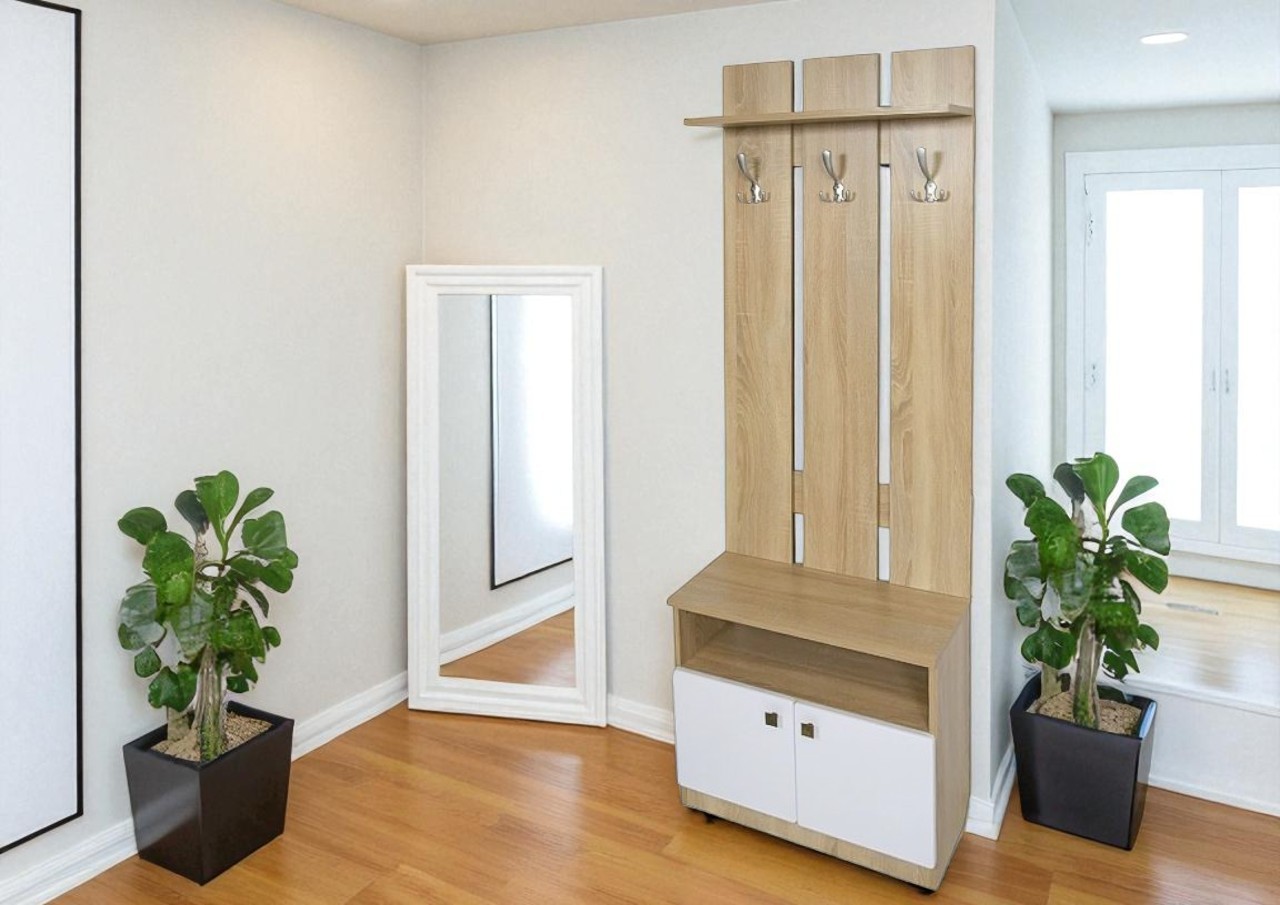 Стильная вешалка «БН - 201» в цвете «Дуб Сонома» с элементами «Белый Глянец» – универсальное решение для прихожей любого размера.